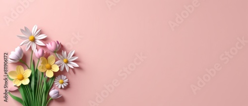 Naklejka premium Spring flowers depicted on a flat background with space for text