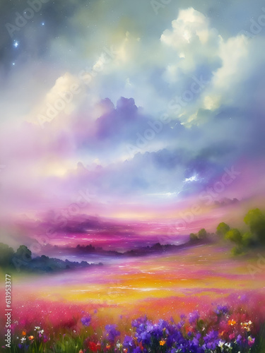 © vector_master, Fototapeta premium Spring flowers field. AI generated illustration