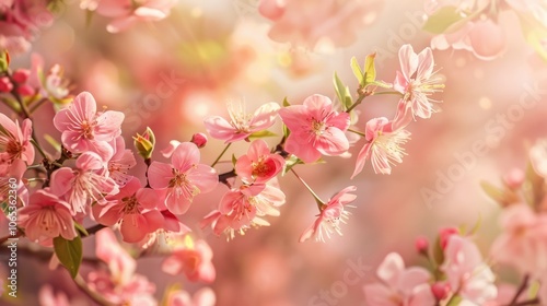 © Lasvu, Fototapeta premium Spring Flowers in a Beautiful Pink Floral Background