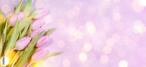 Fototapeta premium Spring flowers on the wooden background, greeting card for Mothers Day, 8...