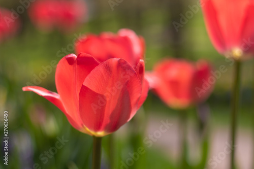 Fototapeta premium Spring flowers red tulips. beautiful red flowers.