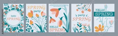 Fototapeta premium Spring flowers typography template posters. Vertical covers with beautiful...
