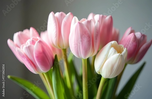 Fototapeta premium Spring flowers. Women's day background. Bouquet of white and pink tulips