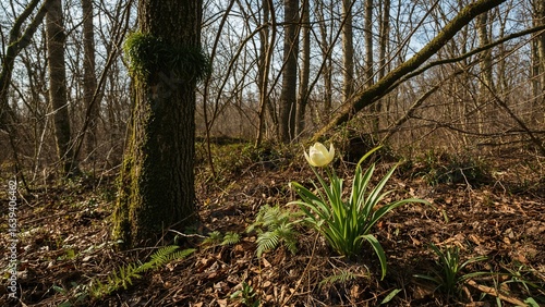 Fototapeta premium Spring forest adorned with early winter blossoms