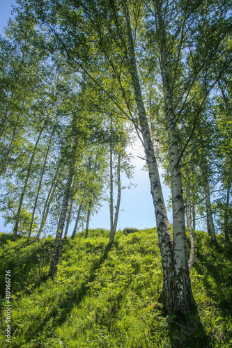 Obraz premium Spring forest, birch trees, sun through the foliage