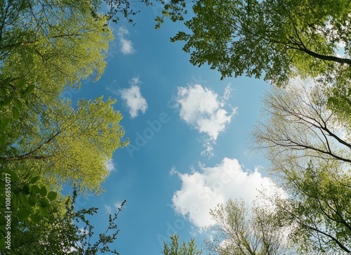 Obraz premium Spring Forest Canopy and a Beautiful Sky