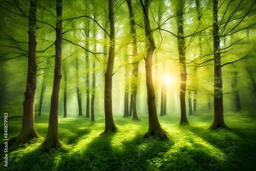 © Awan, Obraz premium spring forest - fresh leaves and sun rays