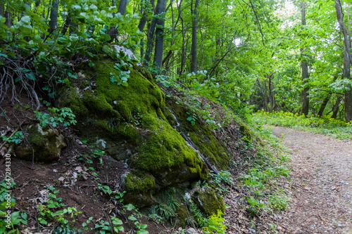 © mitarart, Fototapeta premium Spring forest, hiking trail