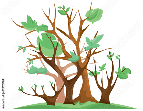 Fototapeta premium Spring forest isolated on white background. Trees with budding leaves.