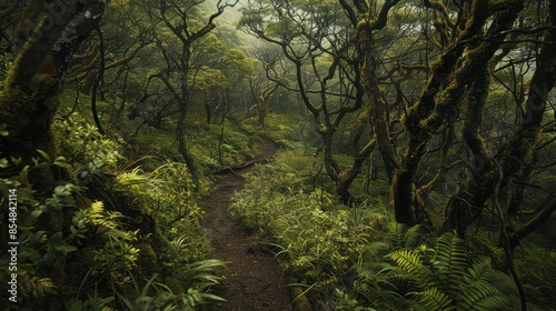 © Imsuniyah, Obraz premium spring forest nature landscape, beautiful spring stream, river rocks in mountain forest