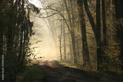 © Aniszewski, Obraz premium Spring forest on a foggy morning