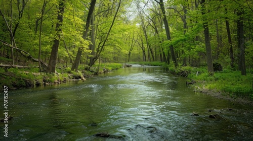 © Roman, Obraz premium Spring forest river. Generative AI