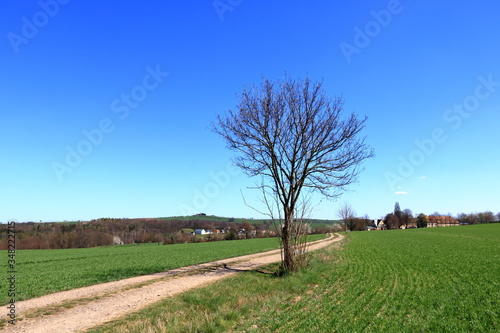 © Dynamoland, Obraz premium Spring forest theme: leafless trees and blue sky