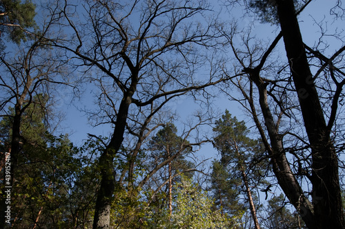 © green_flame, Obraz premium spring forest: tree branches against the blue sky