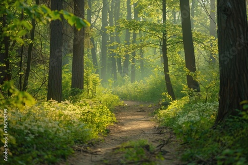 Obraz premium Spring forest vegetation sunlight outdoors.