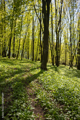 Fototapeta premium Spring forest with wood garlic cover.