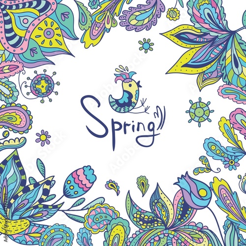 Fototapeta premium Spring Frame with Ethnic Ornaments