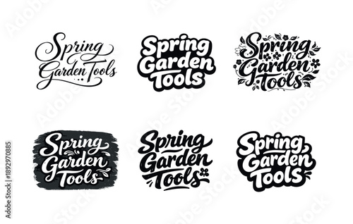 © Valentyna, Obraz premium Spring Garden Lettering. Spring Garden Tools. Set lettering. harmonious lettering variations of the same emblematic concept, each with different artistic