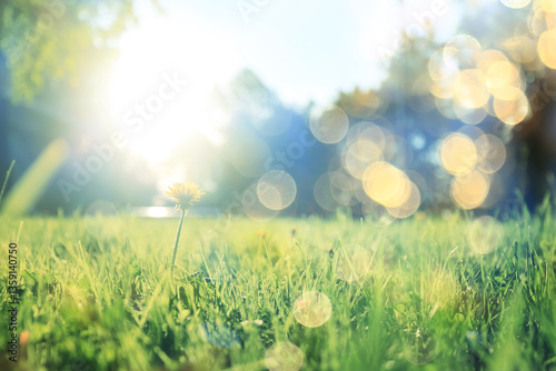 © kichigin19, Fototapeta premium Spring green grass background, backdrop nature lawn