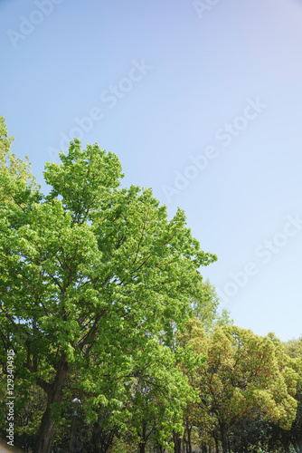 Fototapeta premium Spring, green maple leaves, crisp landscape