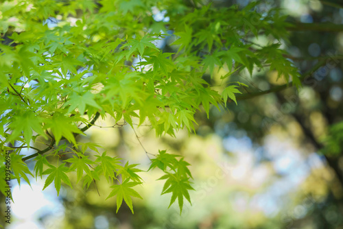 © NOS, Obraz premium Spring, green maple leaves, crisp landscape