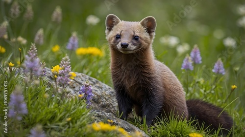 © Chamika, Fototapeta premium Spring Harmony: A Pine Marten and the Blossoms