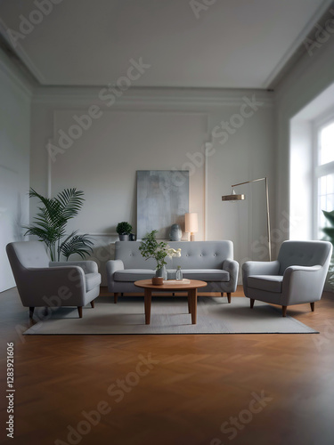 © Upload.Theory, Fototapeta premium Spring Home Refresh – Minimalist Bright Interior with Green Plants