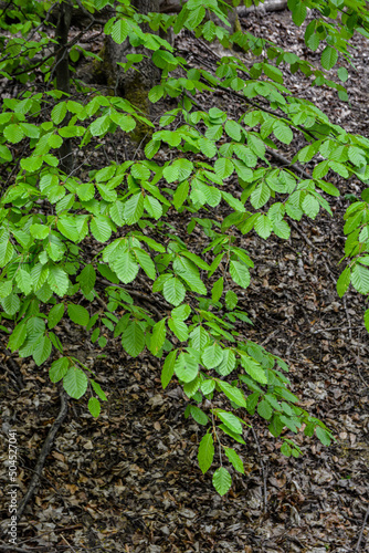 Obraz premium spring hornbeam leaves macro