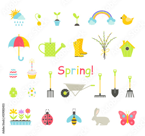 © nadia1992, Fototapeta premium Spring icons set.