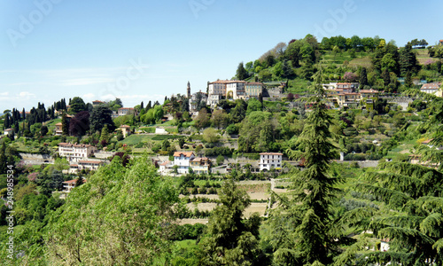 Fototapeta premium Spring in Italy. The blossoming hills of Bergamo.