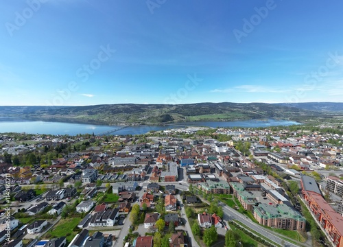 Fototapeta premium Spring in Lillehammer, aerial drone photo