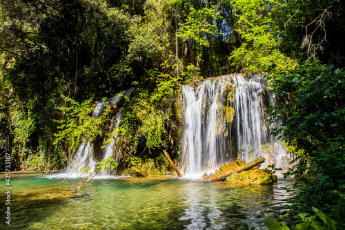 Fototapeta premium Spring in Salt Dels Murris waterfall, La Garrotxa, Girona, Spain