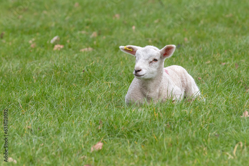 © Paul, Obraz premium Spring Lamb Lying in Grass