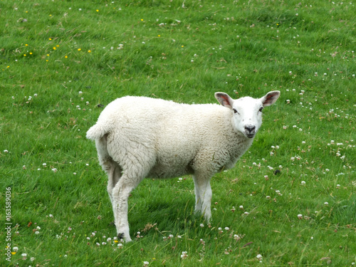 © philopenshaw, Fototapeta premium spring lamb standing in a field looking at camera