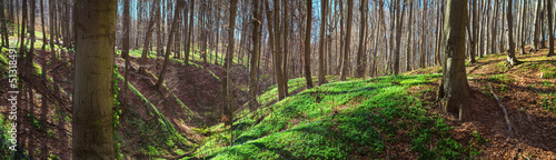 © rustamank, Fototapeta premium Spring landscape, banner, panorama - view of the deciduous forest in the rays of the spring sun