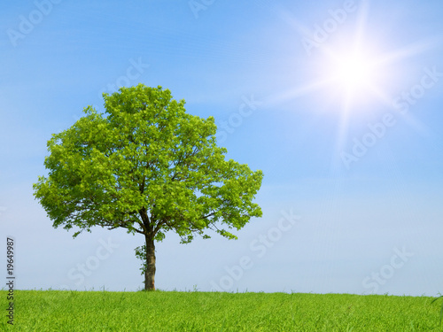 © motorolka, Obraz premium Spring landscape - green tree on the blue sky