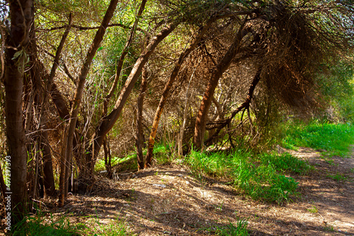 Naklejka premium Spring landscape in the forest. Natural walking path in the forest.