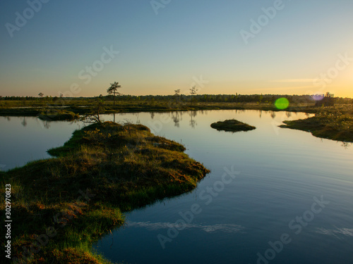 © ANDA, Fototapeta premium spring landscape in the swamp. small swamp lakes, mosses and swamp pines. small island of swamp water and beautiful reflections