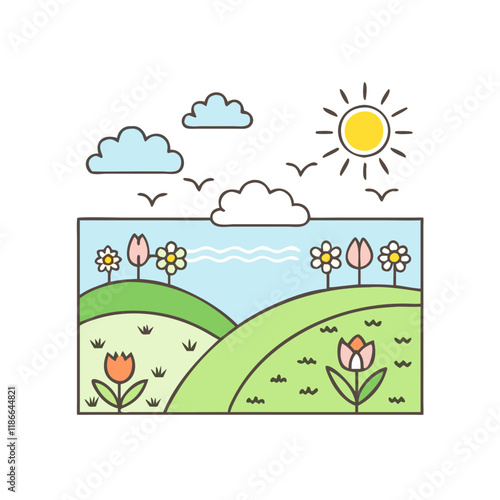 Fototapeta premium spring landscape vector icon, easter vector illustration - simple illustration of spring landscape perfect for logos, and easter-themed designs.
