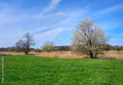 © manfredxy, Obraz premium Spring landscape with a flowering tree