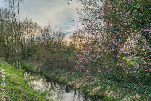 © Bjoern Bernhard, Fototapeta premium Spring Landscape With Blossoming Tree At A Small Creek