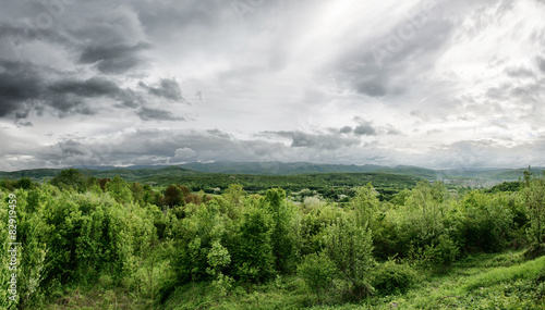 Obraz premium Spring landscape with Caucasus green mountains