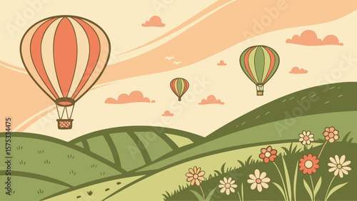 © Wasif, Fototapeta premium Spring landscape with flowers birds and butterflies in green meadow under blue sky