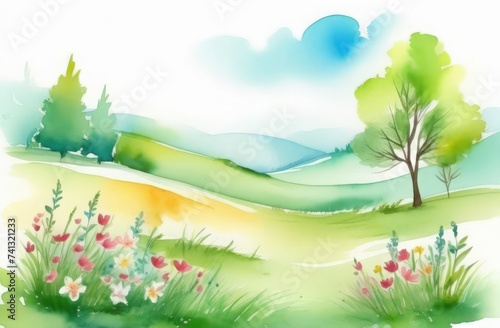 Obraz premium spring landscape with grass and flowers