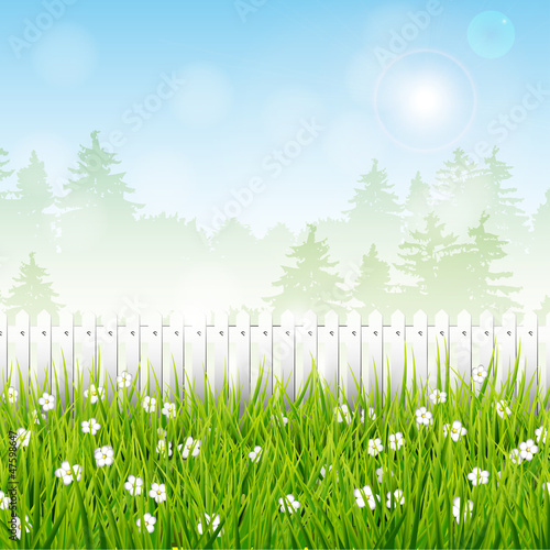 Obraz premium Spring landscape with white fence
