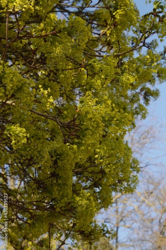 © Jonas, Fototapeta premium spring leafes on a tree with blue background
