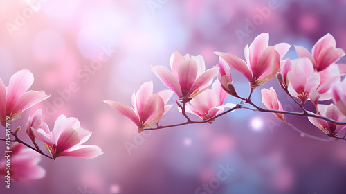© Nazia, Fototapeta premium Spring magnolia flowers on the natural backgroun ai generative
