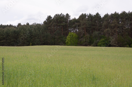 © Sentemon , Fototapeta premium Spring meadow and blue sky over grass field, countryside landscape