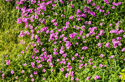 Naklejka premium spring meadow field blooming with purple flowers