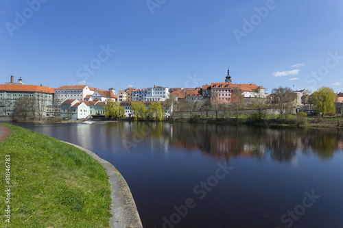 © Kajano, Obraz premium Spring medieval Town Pisek above the river Otava, Czech Republic